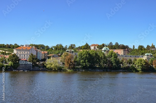 Obraz premium the Vltava River and behind it historic buildings in Prague