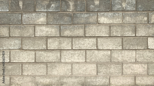 Fototapeta premium The wall is made of smooth gray large textured brick. Beautiful brickwork...