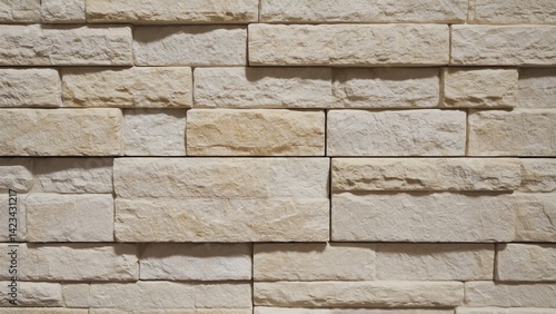 Fototapeta premium The wall is made of white bricks and has a rough texture. The bricks are laid in a pattern, creating a visually interesting and textured surface