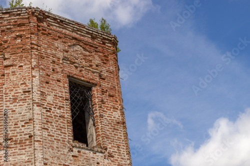 Fototapeta premium The walls of the Russian destroyed church of red brick
