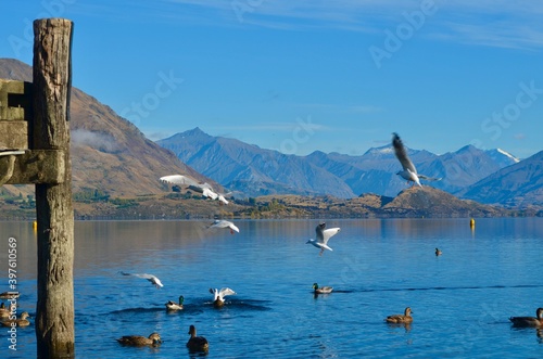 © Fran, Fototapeta premium The Wanaka Wharf, Wanaka Lake in New Zealand