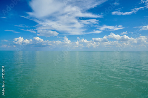 © Yerbolat, Fototapeta premium The water surface with clouds Clouds over Lake Balkhash