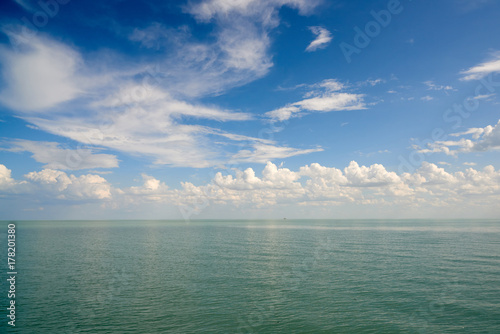 © Yerbolat, Fototapeta premium The water surface with clouds Clouds over Lake Balkhash
