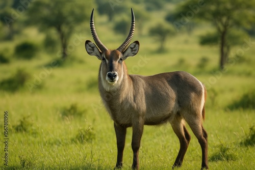 © AbstractAI, Naklejka premium The waterbuck is a sizable antelope native to sub-Saharan Africa, belonging to the Kobus genus within Bovidae.