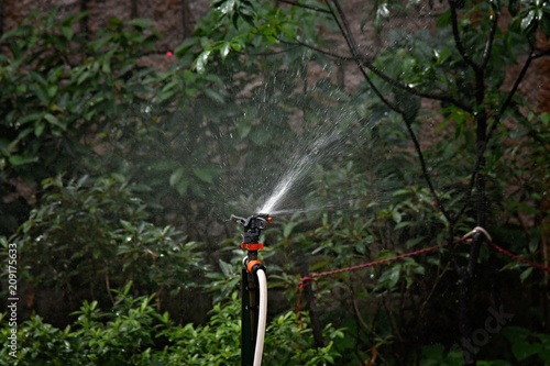Naklejka premium The watering machine sprinkles greens