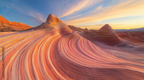 Fototapeta premium The Wave rock formation with vibrant sandstone layers at sunset