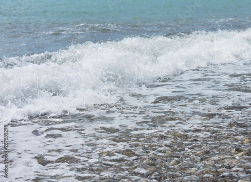 © Ekaterina Bozhukova, Fototapeta premium The wave rolls on the rocky shore.