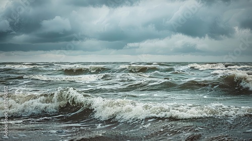 Fototapeta premium The waves of an autumn sea on an overcast, windy day