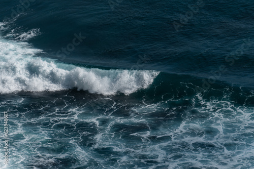 Fototapeta premium The waves of the ocean water meet with underwater pointed rocks