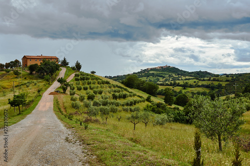 Naklejka premium the way to a rural house on a hill in Tuscany..