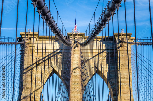 Fototapeta premium The web of cables of Brooklyn bridge, New York, USA