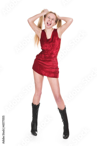 © Hunta, Fototapeta premium The whimsical girl in a red dress
