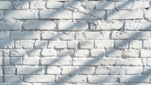 Fototapeta premium The white brick wall showcases intricate shadow patterns that dance elegantly...