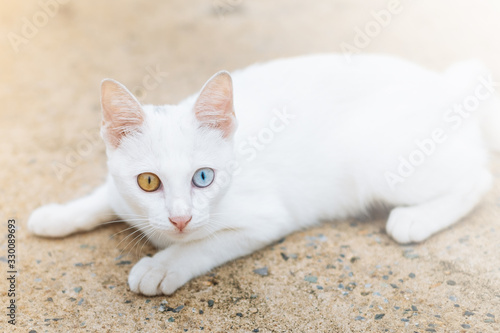 Fototapeta premium The White Cat Two Eyes Colours Thai Cat