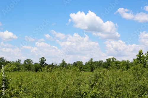 © Al, Obraz premium The white fluffy clouds in the blue sky in country field.