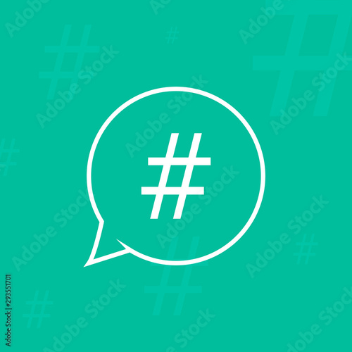 Fototapeta premium The white hashtag icon is depicted on a blue background.