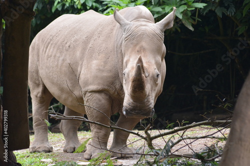 Naklejka premium The white rhinoceros or square lipped rhinoceros, Ceratotherium simum is the largest extant species of rhinoceros.