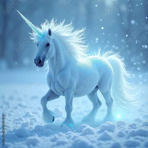 © xu, Fototapeta premium The white unicorn standing in the snow