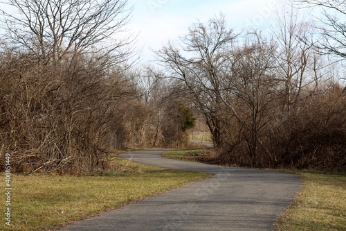Fototapeta premium The winding empty pathway in the park.