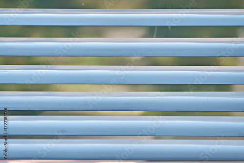 © Володимир Овчаров, Fototapeta premium The windows of the house are decorated with white blinds. Close-up, selective focus