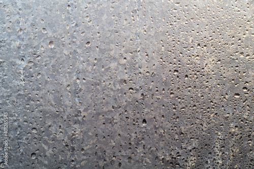 Fototapeta premium The winter frozen window is thawing. Texture