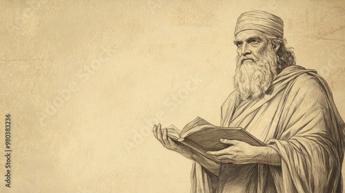 © T Studio, Fototapeta premium The Wisdom of Solomon: Fairly Judging a Difficult Case with Insight and Understanding, 1 Kings Biblical Illustration, Bible Wall Art, Beige Background