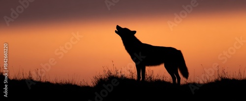 Obraz premium The wolf vocalizing at dusk paints shadows singing into night’s velvet canvas