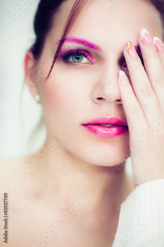 © golubovy, Fototapeta premium The woman with a bright pink make-up.