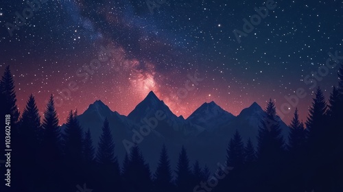 Naklejka premium The wonder and enormity of the night under the stars on a cloudless night. Milky Way and silhouettes of trees and mountains. Beautiful milky way with stars