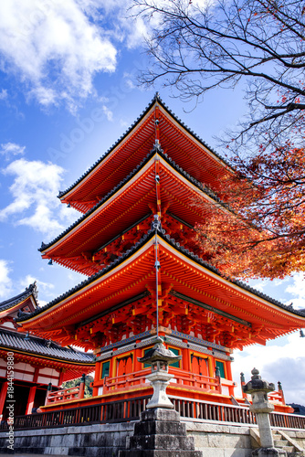© Chongbum Thomas Park, Fototapeta premium The wonderful temple colored with red and black color light at Kyoto Japan.