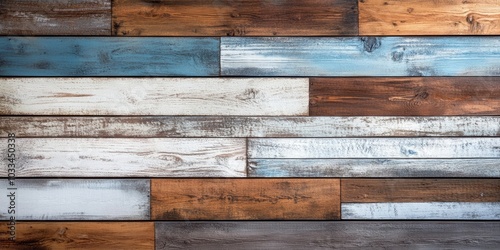 © HN Works, Naklejka premium The wooden background features brown, white, and blue colors.