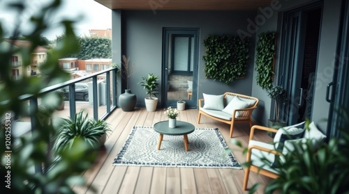 Fototapeta premium The wooden dining table with plush chairs sat elegantly beside a large window...