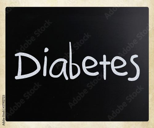 Obraz premium The word "Diabetes" handwritten with white chalk on a blackboard