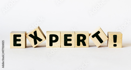 © Sviatlana, Obraz premium The word expert is written on wooden cubes in a row on a light background. can be used for business concepts and financial concepts.