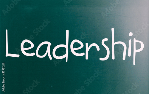 Obraz premium The word "Leadership" handwritten with white chalk on a blackboa