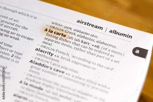 © sharafmaksumov, Fototapeta premium The word or phrase A La Carte in a dictionary.