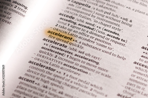 © sharafmaksumov, Obraz premium The word or phrase Accelerant in a dictionary.