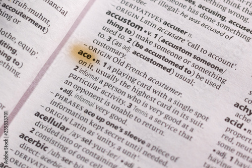 Fototapeta premium The word or phrase Ace in a dictionary.
