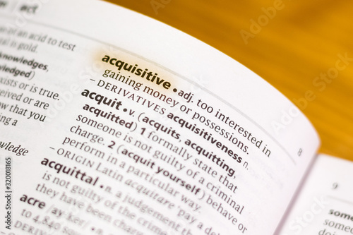 © sharafmaksumov, Fototapeta premium The word or phrase Acquisitive in a dictionary.