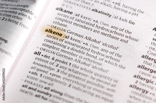Fototapeta premium The word or phrase Alkene in a dictionary.