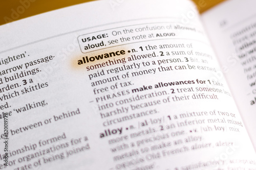 © sharafmaksumov, Fototapeta premium The word or phrase Allowance in a dictionary.