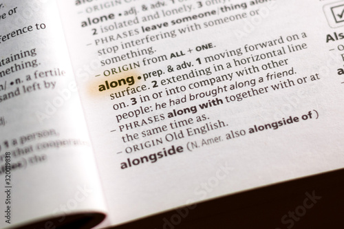 Obraz premium The word or phrase Along in a dictionary.