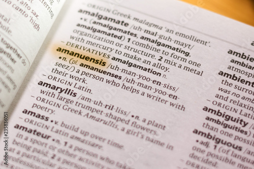 Obraz premium The word or phrase Amanuensis in a dictionary.