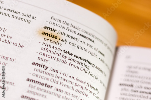 © sharafmaksumov, Obraz premium The word or phrase Amiss in a dictionary.