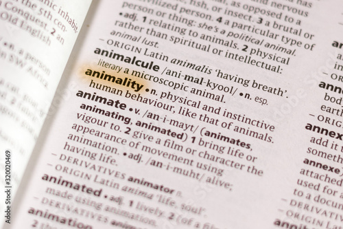 Obraz premium The word or phrase Animality in a dictionary.