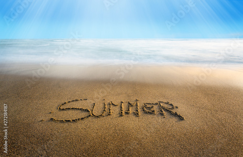 © Massimiliano Agati, Fototapeta premium The word summer carved on the sand is a good omen for the hot season that is about to arrive