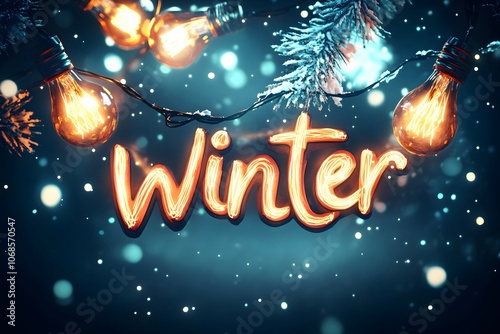 Fototapeta premium The word "Winter" written in a glowing, warm orange script, set against a...