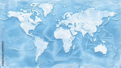 © Sergey, Fototapeta premium the world in minimalist style. The continents are outlined with smooth lines, and the oceans are a light pastel blue.