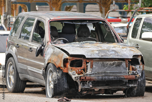 © Suthep_Tangphan, Fototapeta premium The wreckage of the accident car was left outdoors to be repaired.