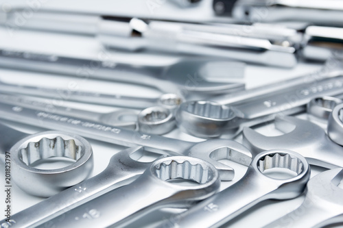 © bumbumbo, Fototapeta premium The wrench steel tools for repair